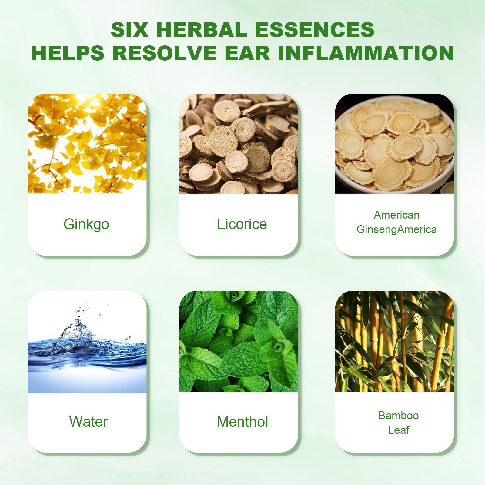 Our ear soothers contain ginkgo biloba, licorice, American ginseng. It can relieve hearing impairment, restore hearing, cure tinnitus symptoms, quickly remove deep dirt and blockage in the ear, effectively treat ear inflammation, and relieve pain. Its use method is very simple: first tear the package, drop 2-3 drops of this product from the side of the head to the affected area, lie on your side for 15 minutes, let the solution fully permeate, use 2-3 times a day. After use, it can relieve ear discomfort, reduce tinnitus, improve sleep and quality of life, reduce ear noise, improve ear blood circulation, and protect ear nerves.