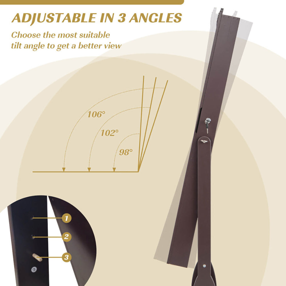 This freestanding jewelry organizer cabinet is adjustable in 3 angles: 98°/102°/106°, which allows you to choose the most suitable tilt angle to get a better view. Moreover, with 4 lockable universal wheels, you can move this jewelry cabinet from room to room and lock it in place easily.