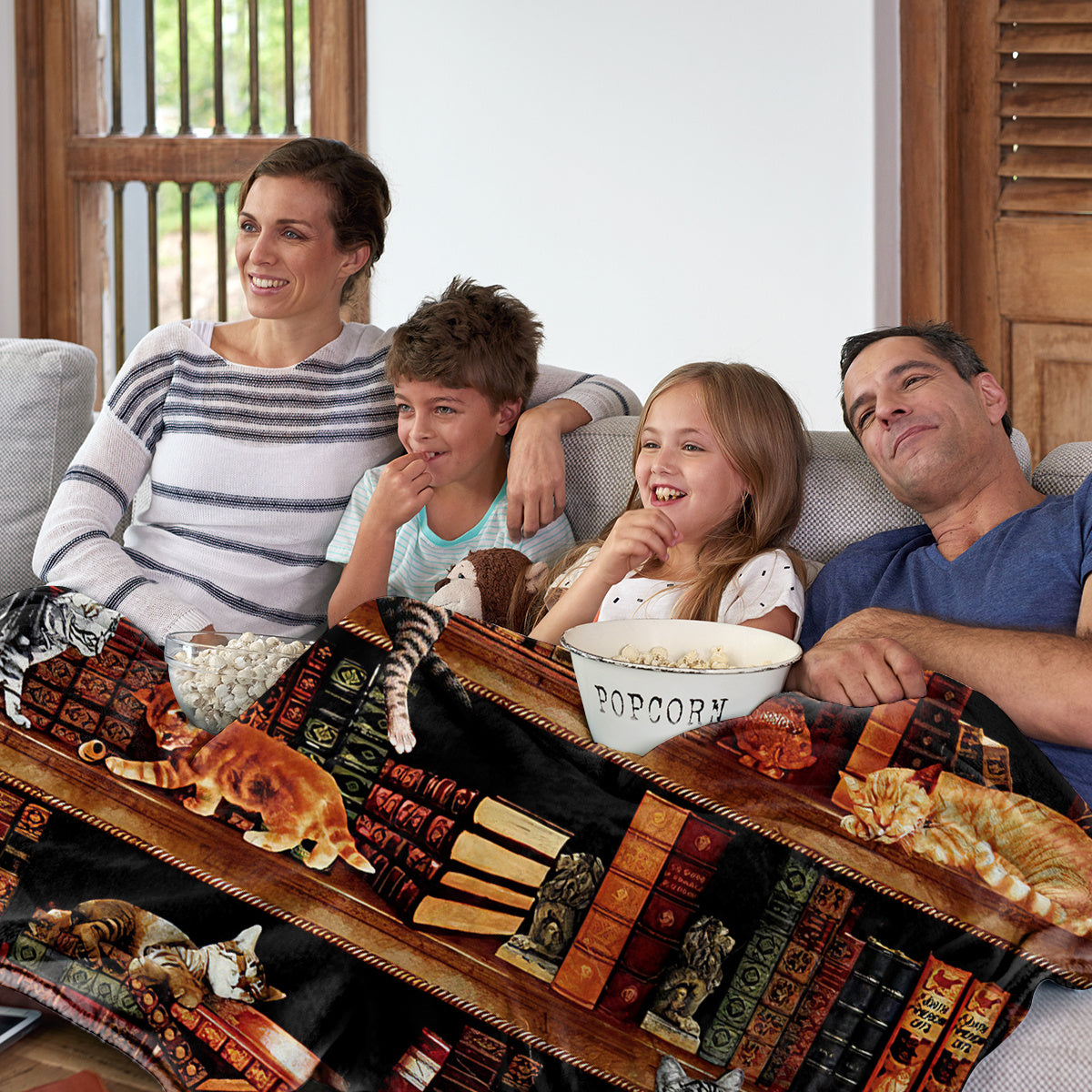 Vintage Kitten Flannel Blanket Cat In The Bookshelf Throw Blanket Librarian Book Lover Gifts Fleece Blankets For Bed Couch Sofa