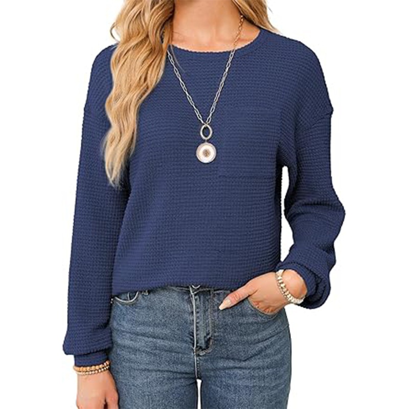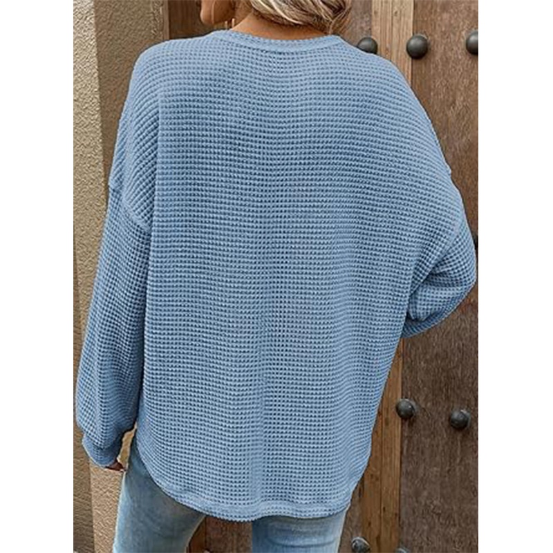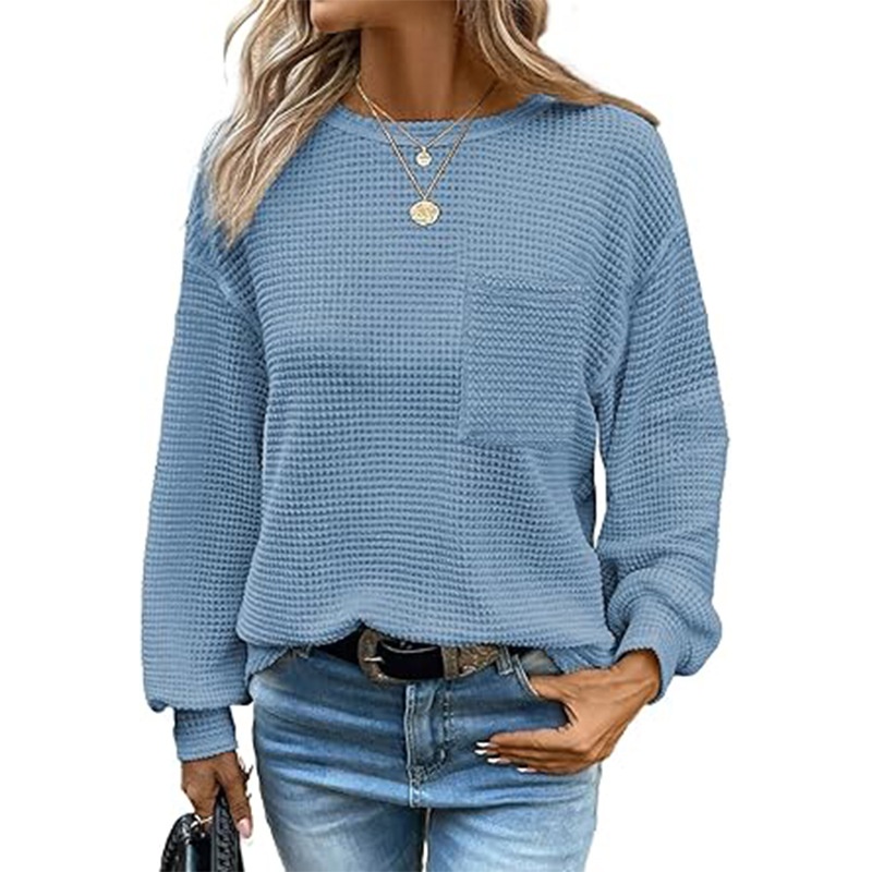Women's Waffle Knit Top Long Sleeve Crew Neck Casual